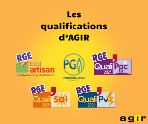 En confiant vos projets à AGIR, vous bénéficiez non seulement d’un savoir-faire reconnu dans tout le Vaucluse, mais aussi d’une entreprise certifiée par plusieurs labels de référence dans le domaine des énergies.